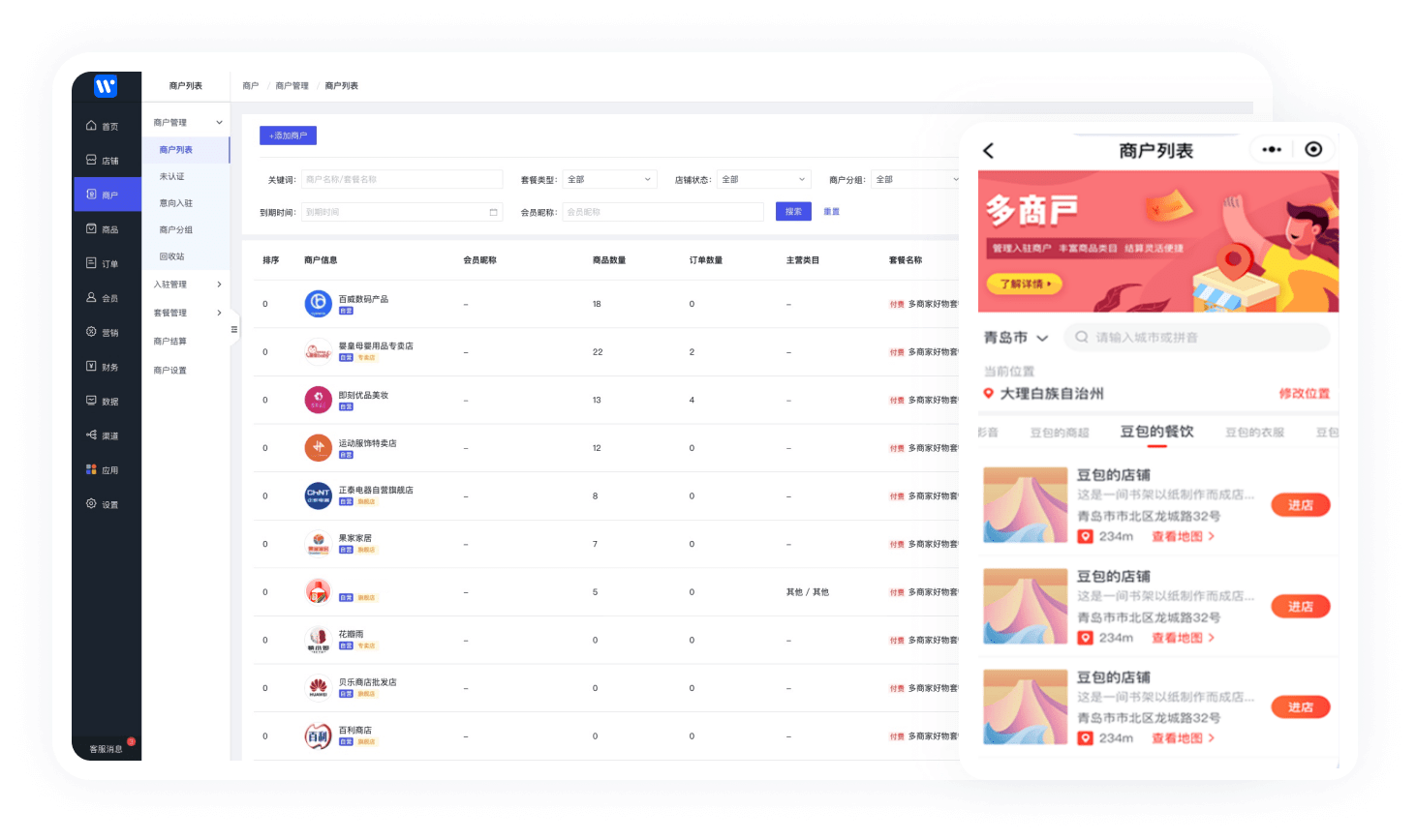 - 打造多商家电商平台,通过打通线上线下消费场景,让传统销售触达更多群体