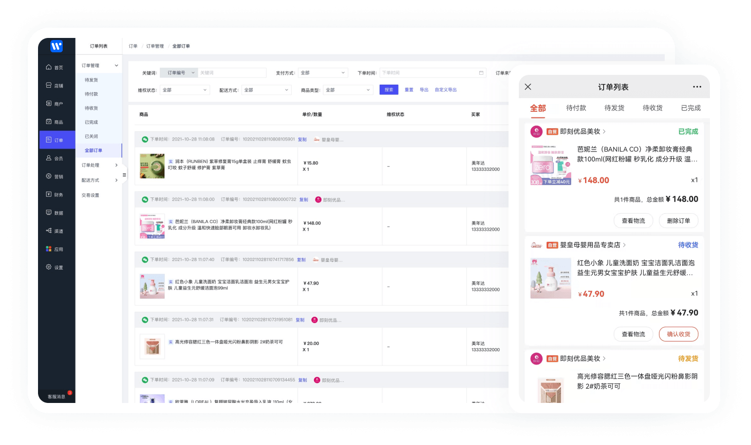 - 移动端操作 店铺轻松管理